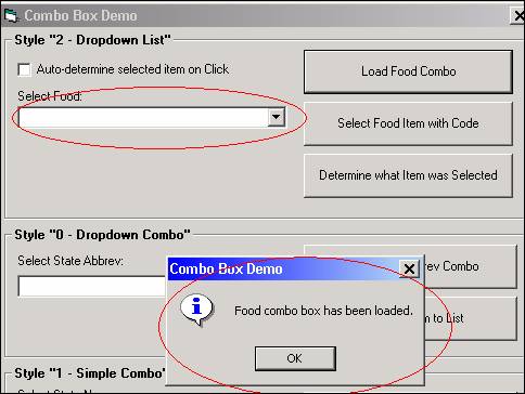 Of the three combo box styles, the one most similar to a ListBox is "2 - Drop-Down List". In fact, everything discussed in the last several pages regarding ListBoxes applies to drop-down style combo boxes EXCEPT the following: