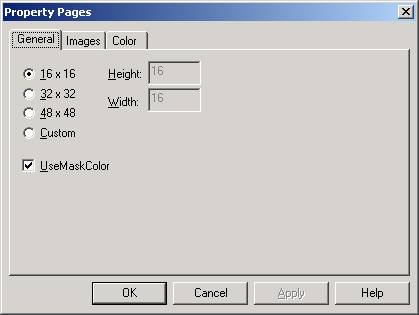 5. Click the Images tab. The Property Pages dialog looks like the screen-shot below: